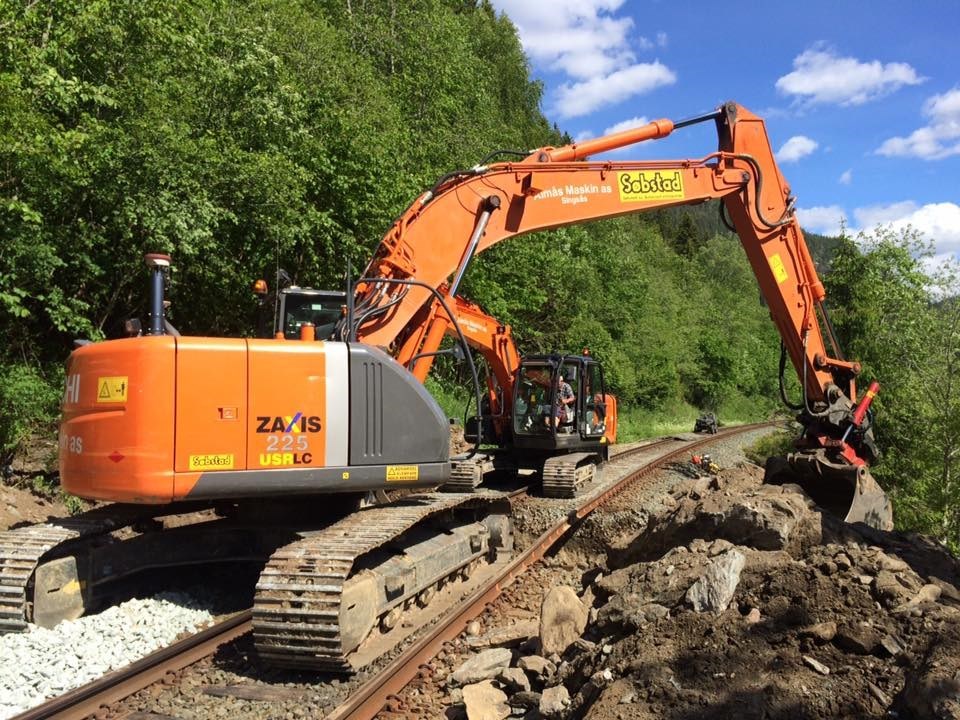 Bygging av nye støttemurer for sikring av jernbanefylling ved Gildset og Krokkurven på Rørosbanen.